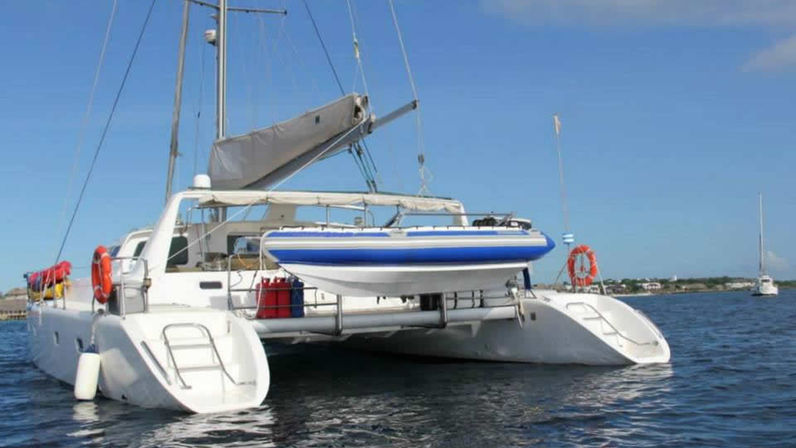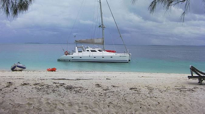 This Voyage 500 catamaran was designed for the charter market and is typical of crewed vessels. Her shallow draft enables beaching and access to secluded anchorages.